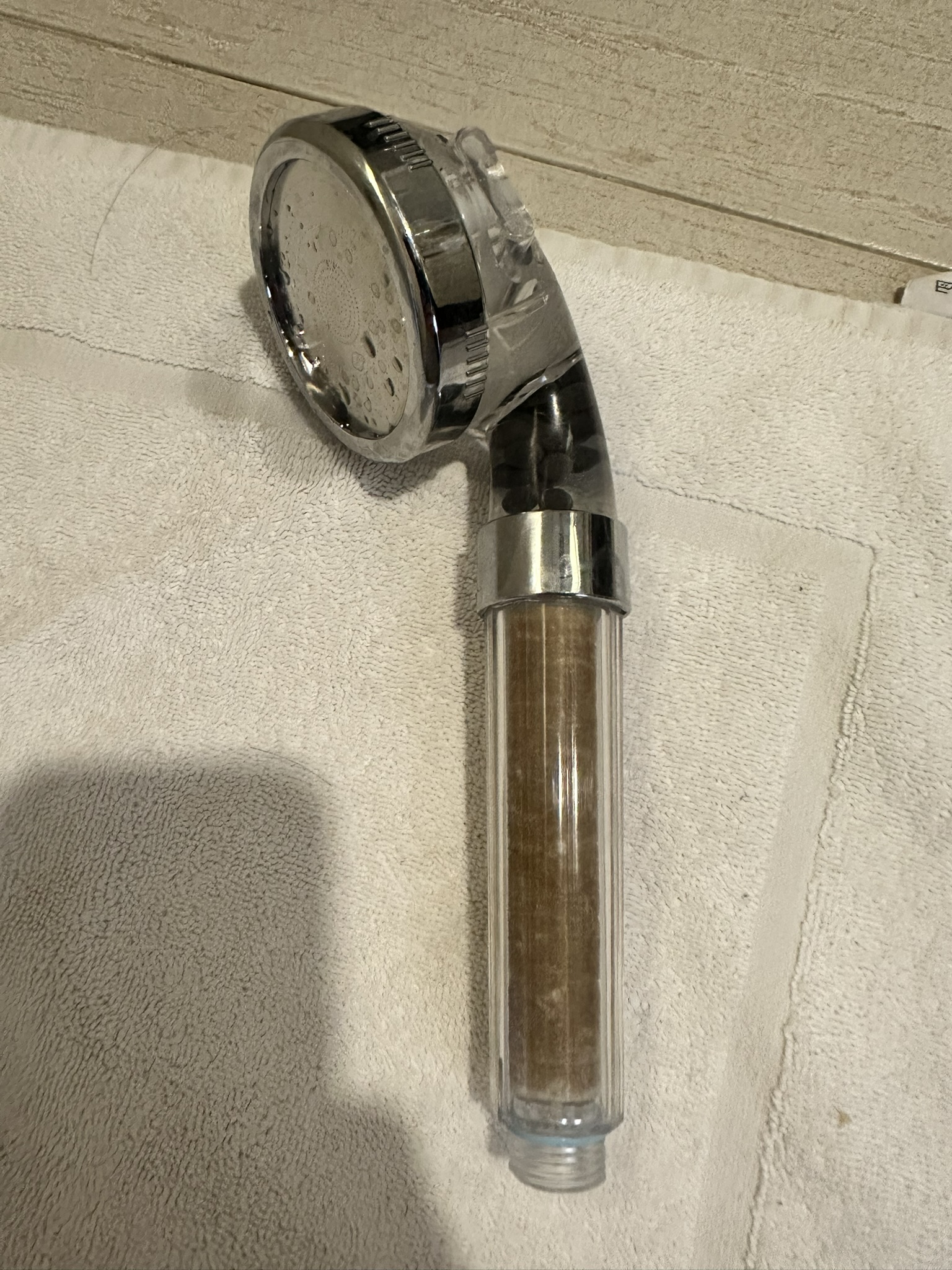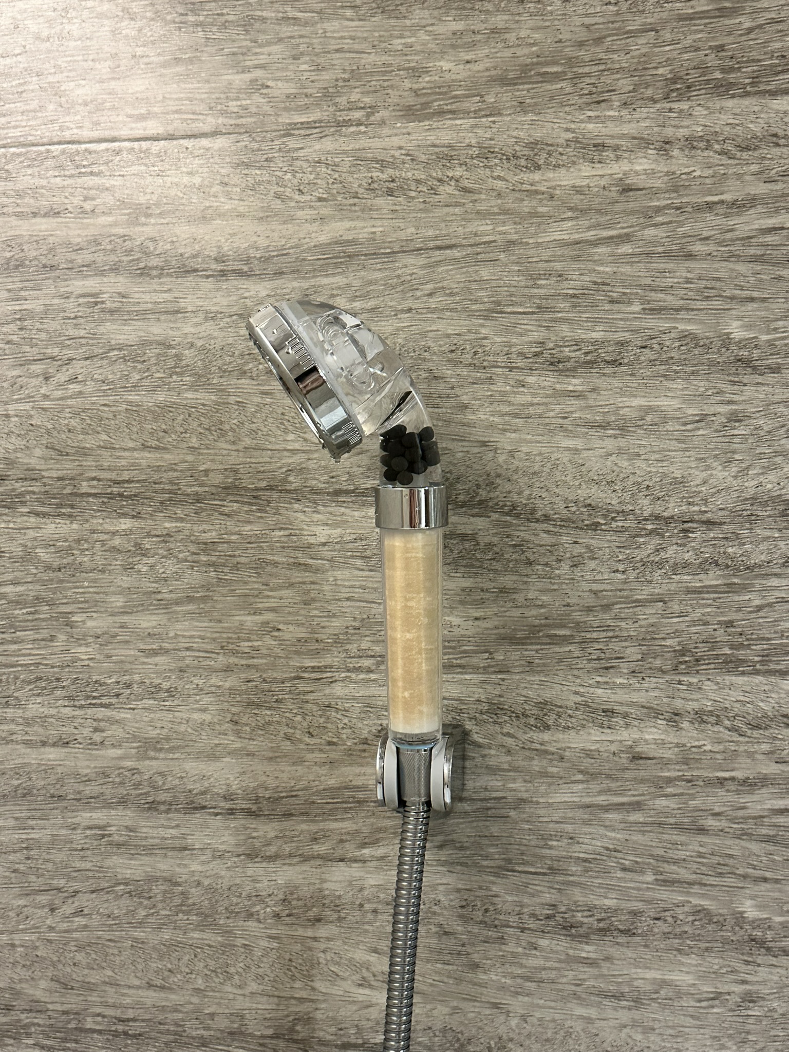 호텔샤워기를 분리하세요. 전 세계적으로 대부분의 샤워기는 규격이 동일한 것 같아요. 필터기 사용하고 하루 만에 색이 누렇게 변했어요.