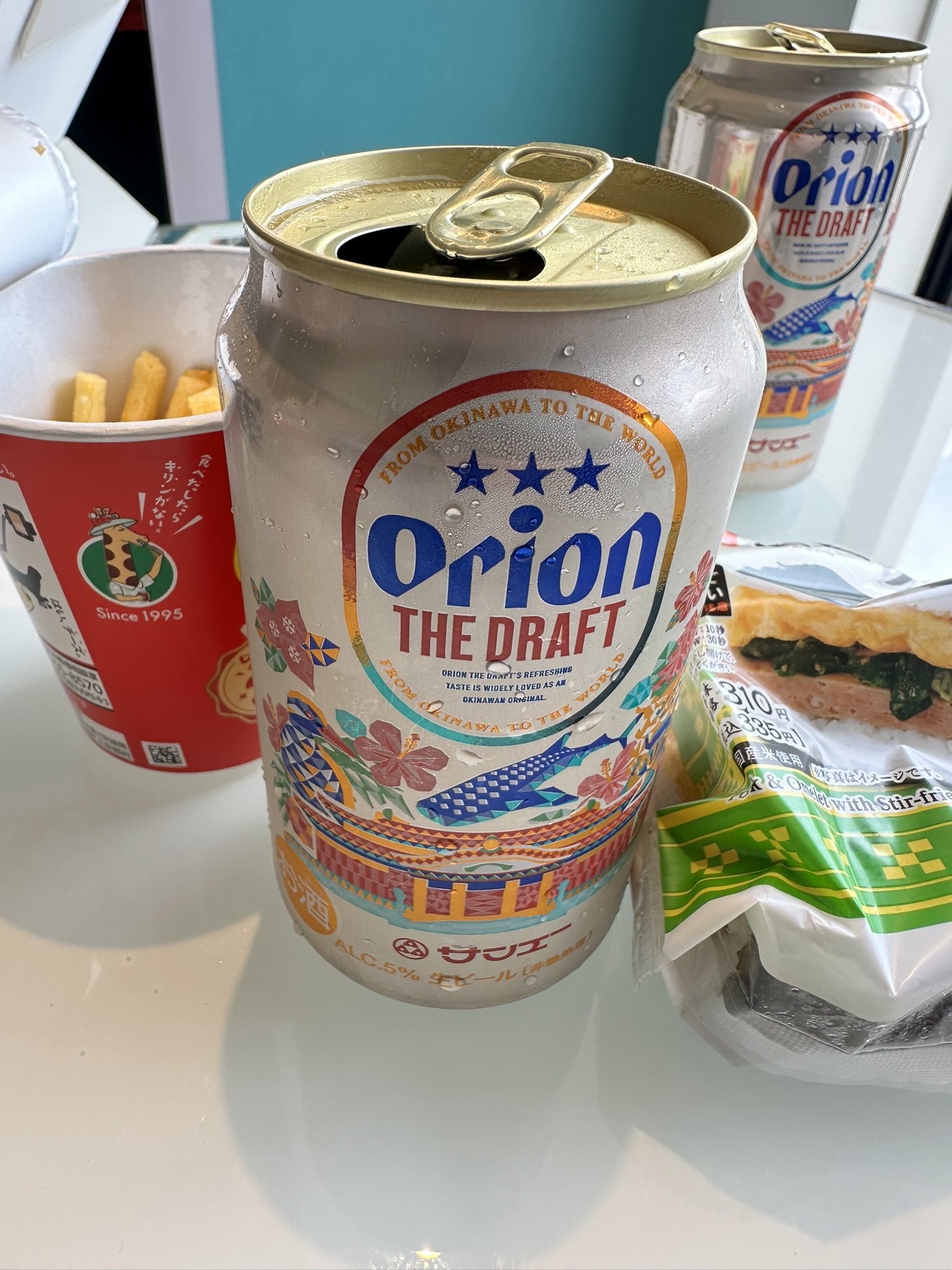 • 오리온 생맥주 (오리온 더 드래프트 비어) : 오키나와에서 제일 유명한 맥주이니 먹어보길 추천한다. 청량감이 있다. 맥주를 기준으로 해도 맛있다는 표현이 나온다. 일반적이고 대중적인 맥주 맛인 것 같다.