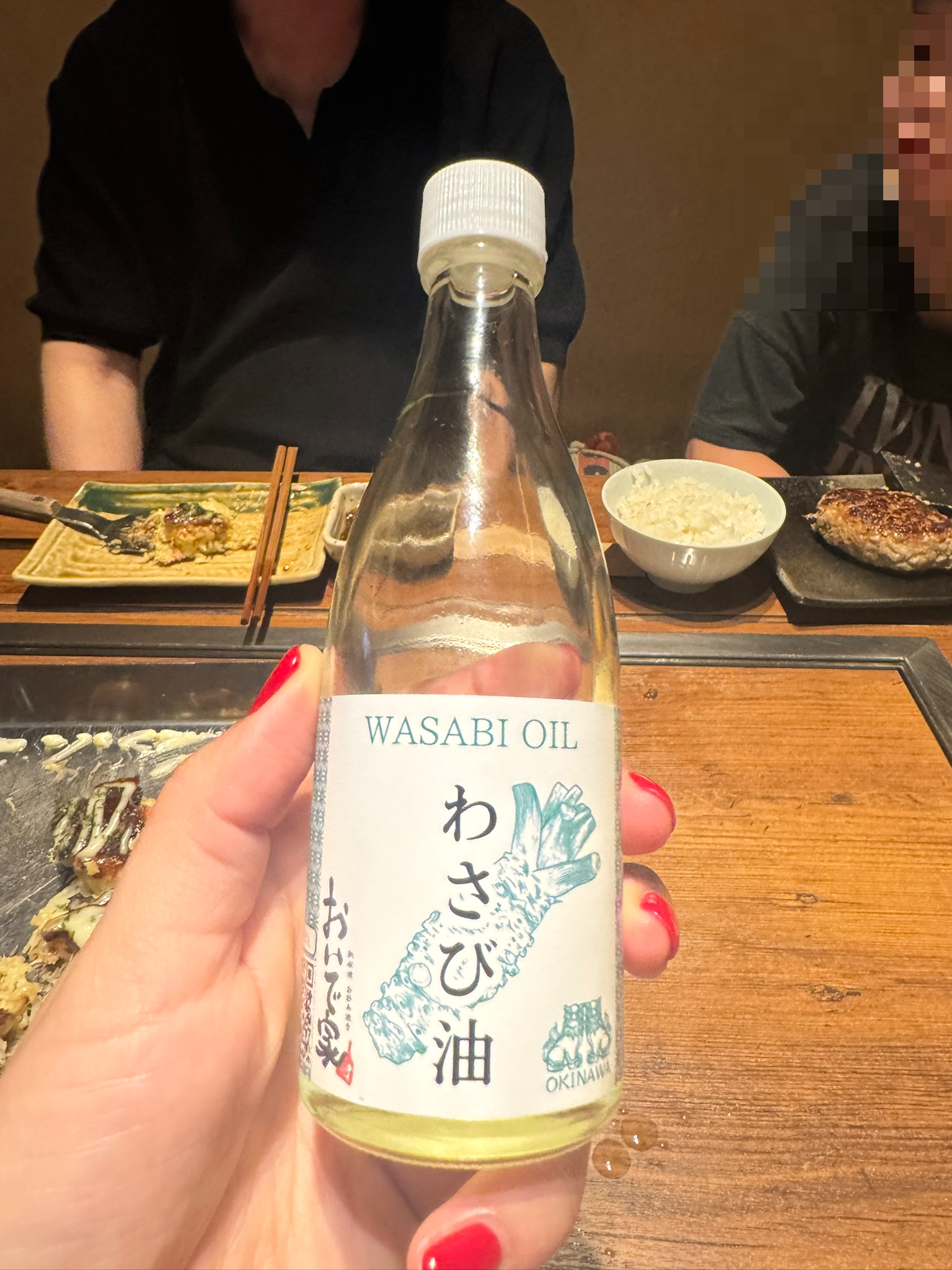 오키나와 여행을 통해 처음 경험한 것 중 하나가 와사비(고추냉이) 오일이었다. 이자카야를 갔었는데 테이블마다 와사비 오일이 있었다. 심지어 그 와사비 오일을 팔고 있었다. 한 입 먹어본 기억이 되새겨보니 너무 신선한 충격이었다. 주문한 요리 중 하나인 일명 닭똥집에 와사비 오일을 한두 방울 뿌렸더니 맛이 훨씬 좋아졌다. 느끼함과 비릴 수 있는 끝맛을 잡아주면서 맛이 매우 깔끔해졌다. 그래서 이자카야에서 3병이나 사게 되었다. 비싸지 않았다. 1병에 770엔이었다. 원화로 약 7천 원이었다. 여행 중에 큰 마트를 가볼 시간이 없었기에 똑같은 게 마트에 있을지도 모르지만 다시 여기서 맛본 똑같은 와사비(고추냉이) 오일을 만나기 어려울 거라는 생각에 3병이나 사게 되었다.