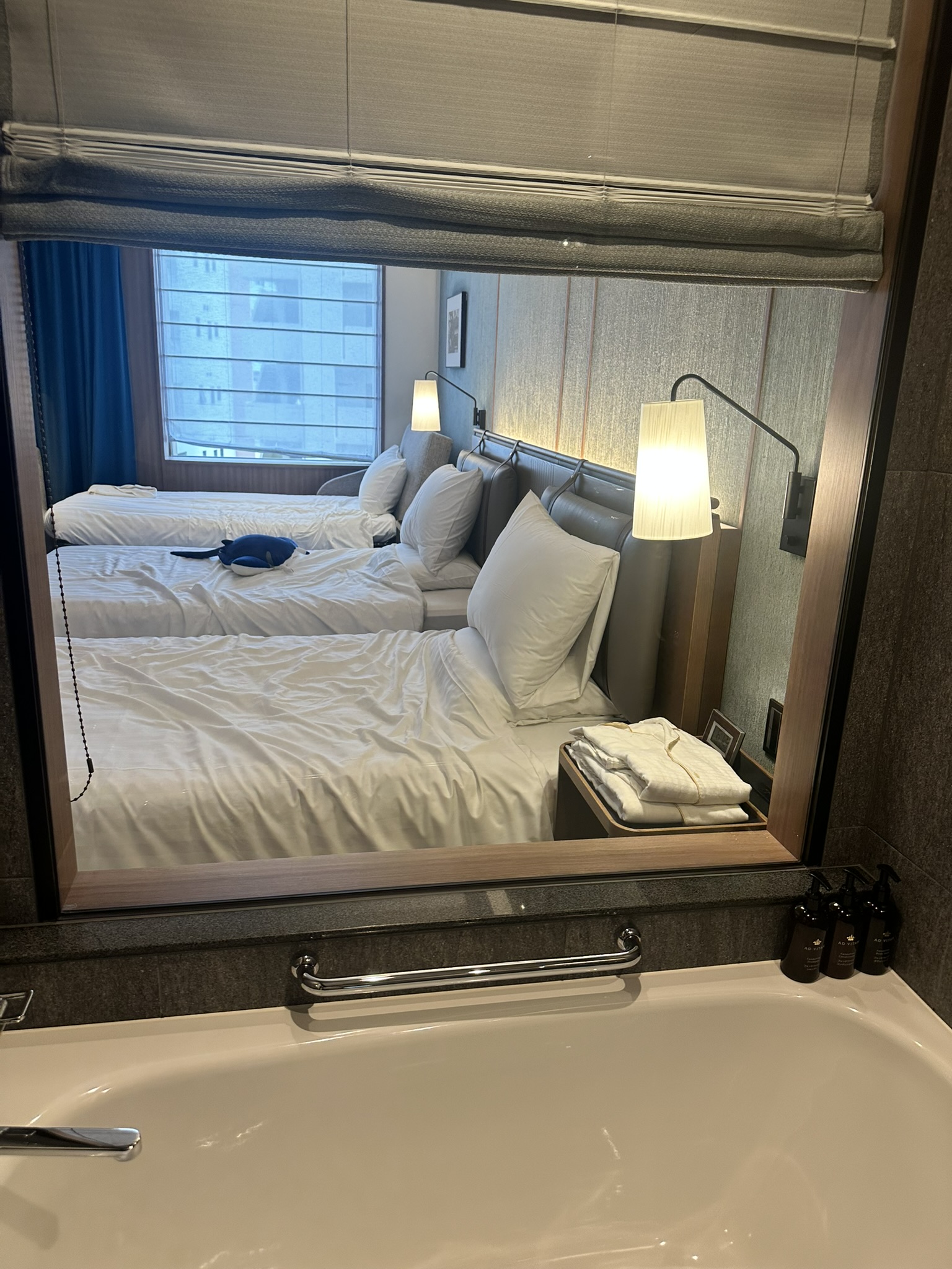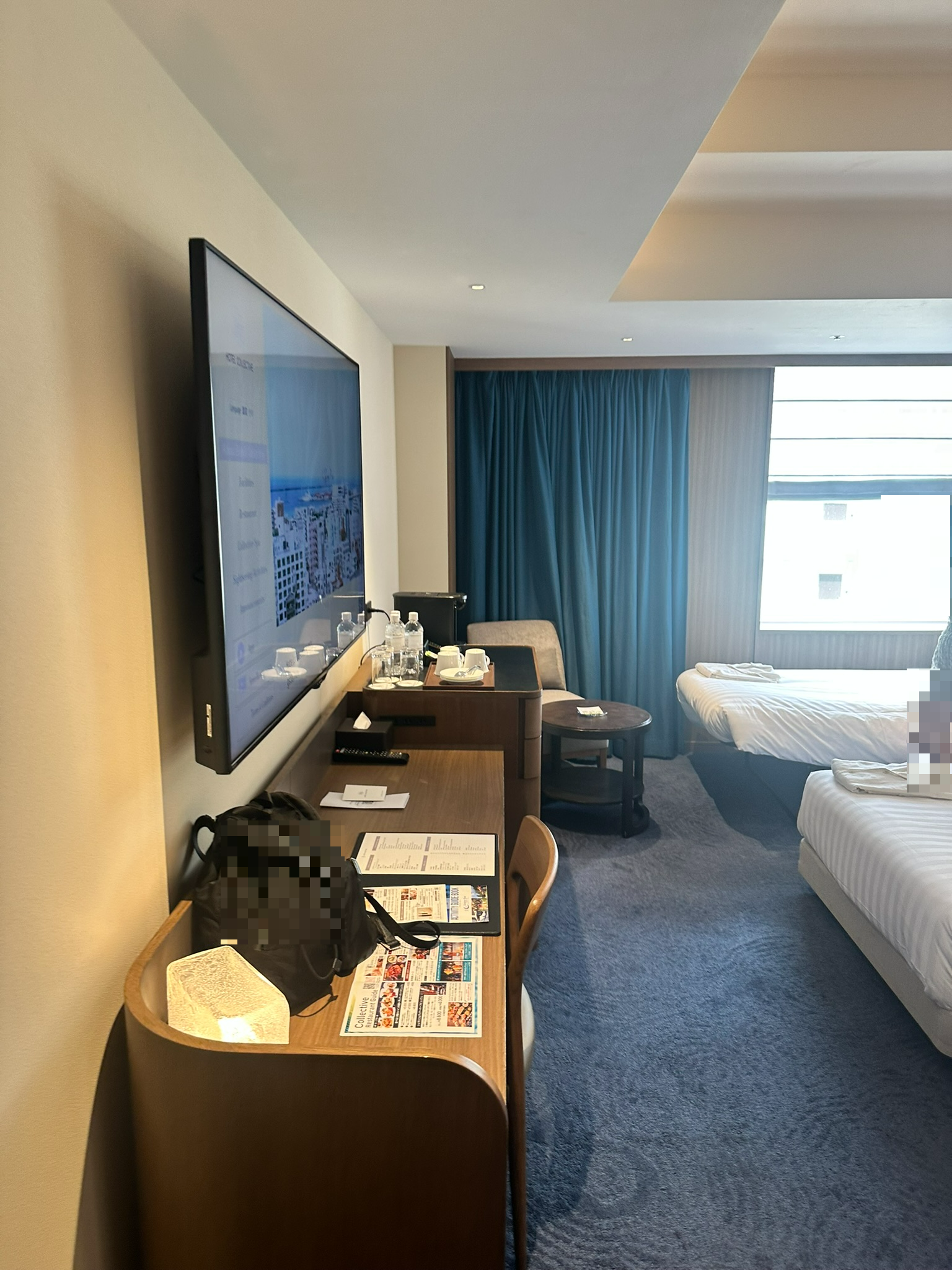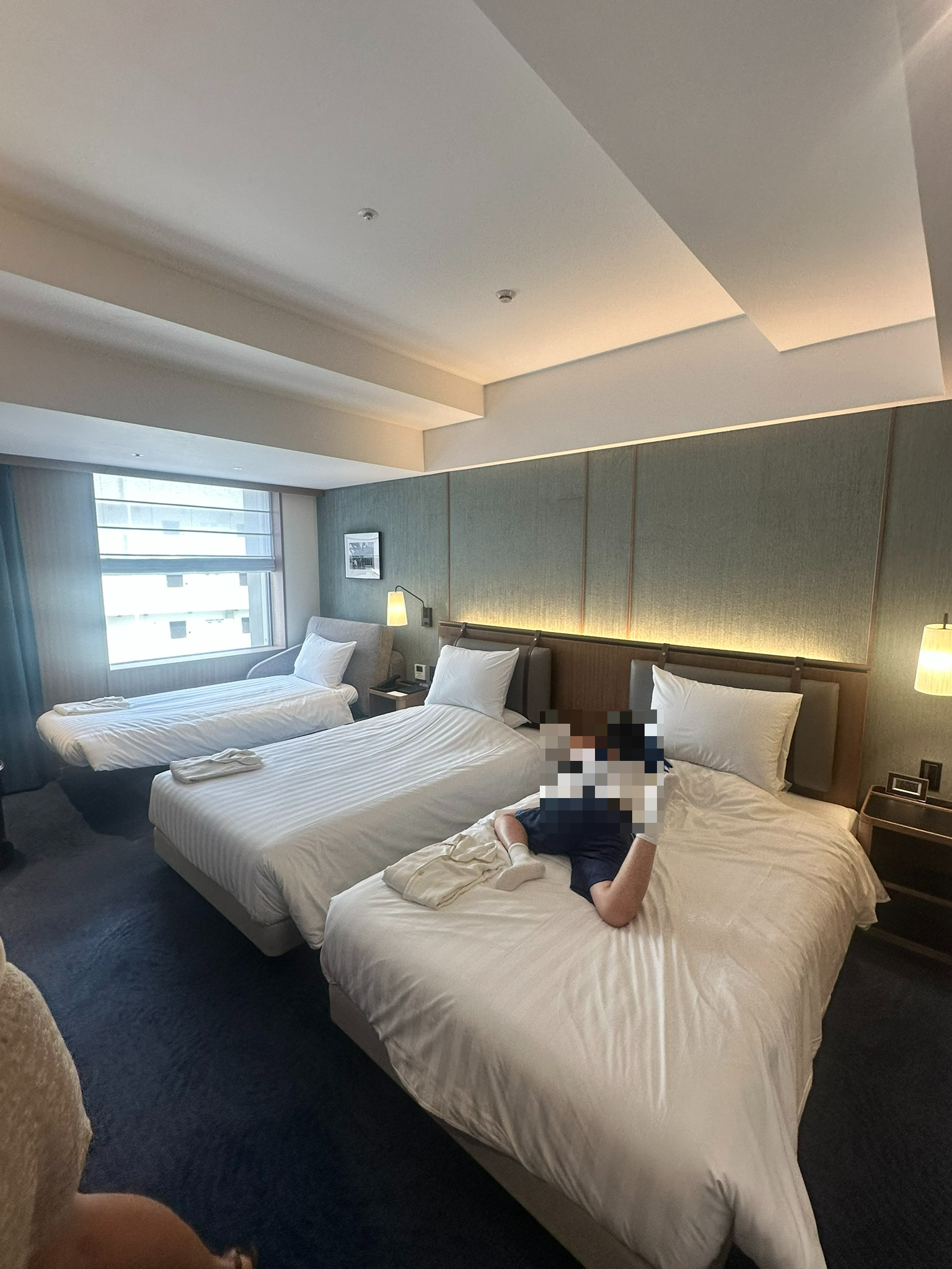 룸 사진을 보여드려요. 저희는 아이와 함께 이용해서 기존 소파자리에 추가 베드가 놓여서 있어서 침대가 3개였어요. 피곤한 여행에서 각자 침대 1개씩 이용해서 잠을 자다 보니 더욱 편안했어요. 다른 호텔과는 다르게 엑스트라 베드에 대해서 추가 요금이 청구되지 않았어요.
