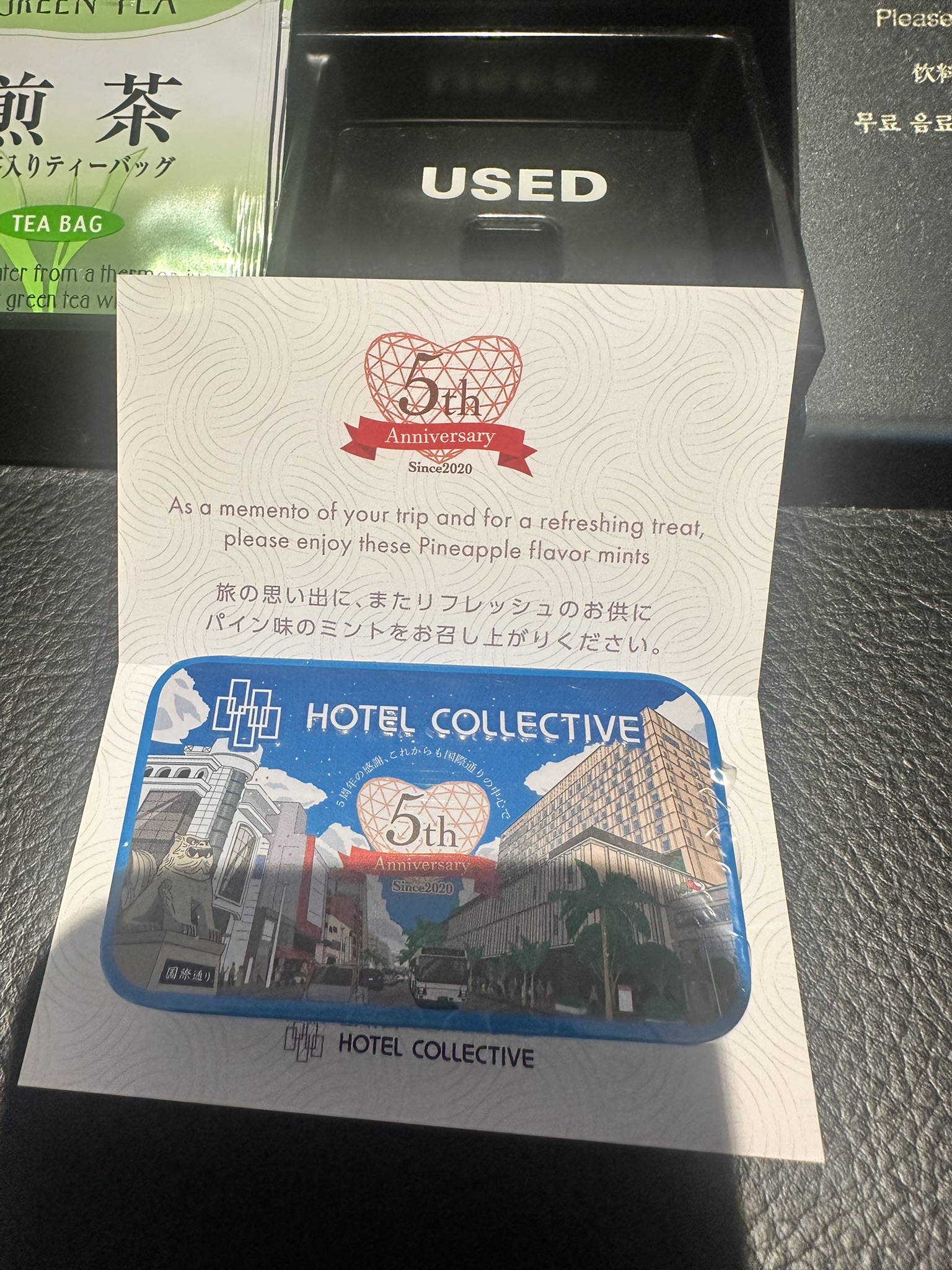 • 우산과 잠옷 제공 : 호텔 컬렉티브에서도 우산과 잠옷을 제공해요. 오키나와가 이번이 처음이라 힐튼과 여기 2군데만 이용해보았지만, 두 군데 모두 우산과 잠옷을 제공했어요. 우리나라 제주도도 우산 대여 서비스를 도입했으면 좋겠어요. 캐리어에 우산을 챙겨갈 필요가 없어서 좋은 서비스 같아요.