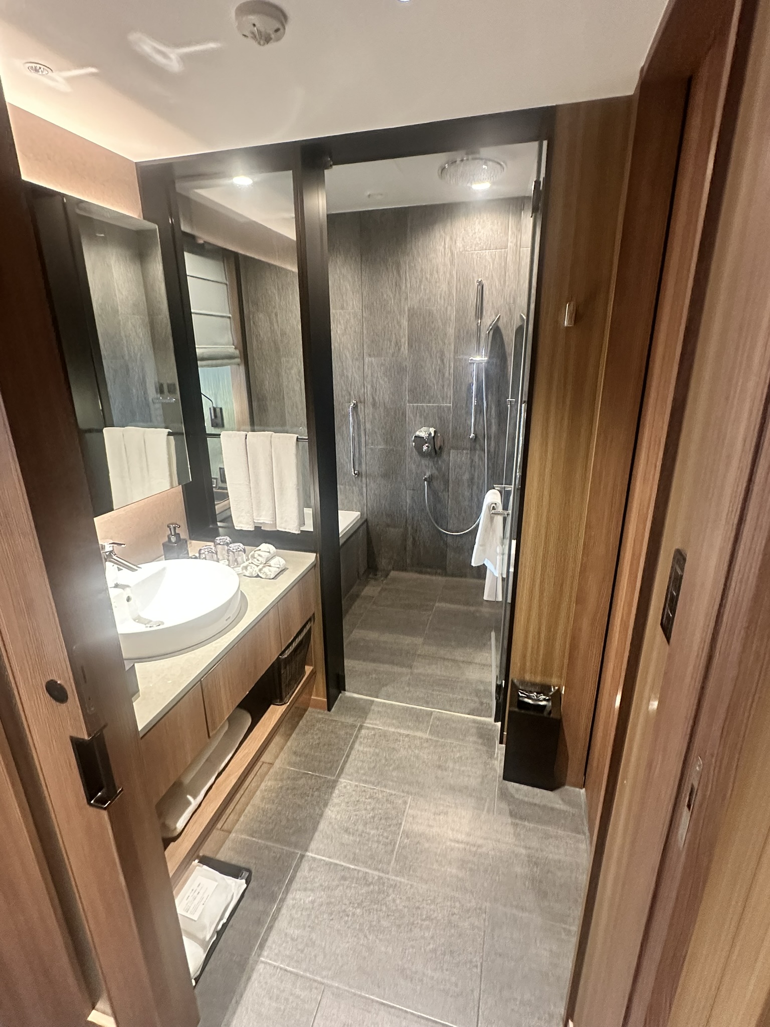 • 욕실 및 화장실 : 욕실에서 침구가 보이는 유리창으로 되어 있어요. 아이 탕목욕 시켜줄 때 침대에서도 보이니까 편하더라고요. 그리고 있을 것은 다 있답니다. 서랍에는 일회용품들도 비치되어 있어요. 물론 우리나라와 다르게 치약과 칫솔도 있어요.