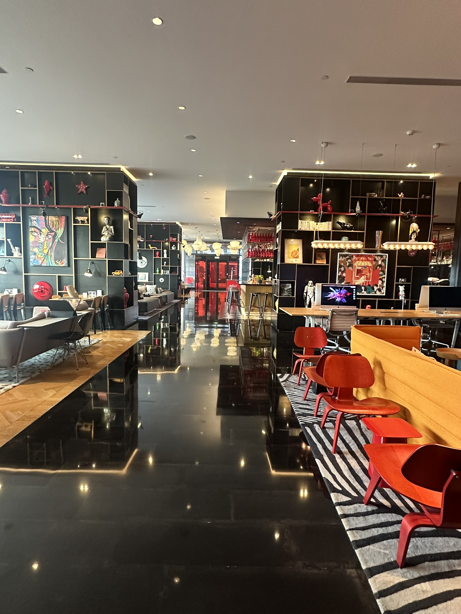 호텔 로비와 라운지 그리고 체크인카운터가 같이 있어요.
